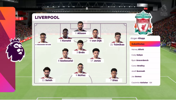 Forwards: Mohamed Salah, Darwin Núñez, Luis DÃaz